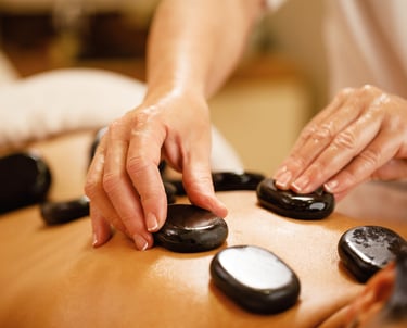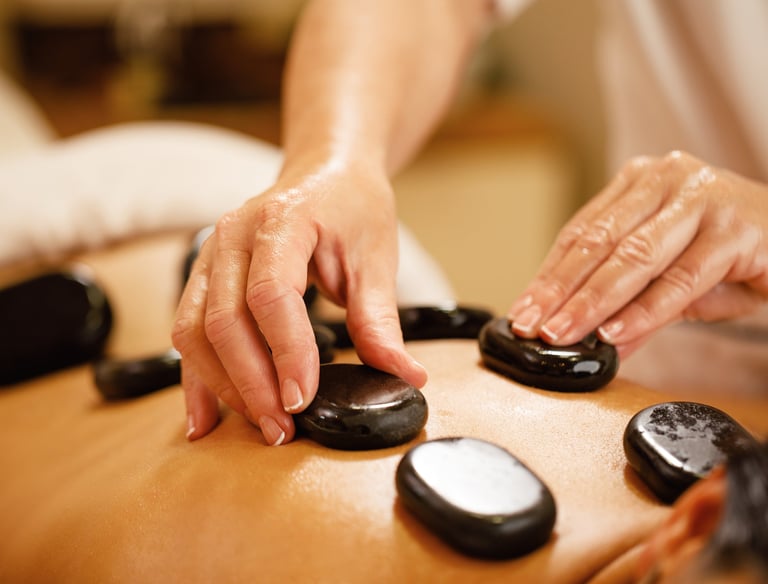 Hot stone massage involves the use of smooth, heated stones placed on key points of the body to relax muscles and improve circulation.