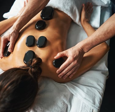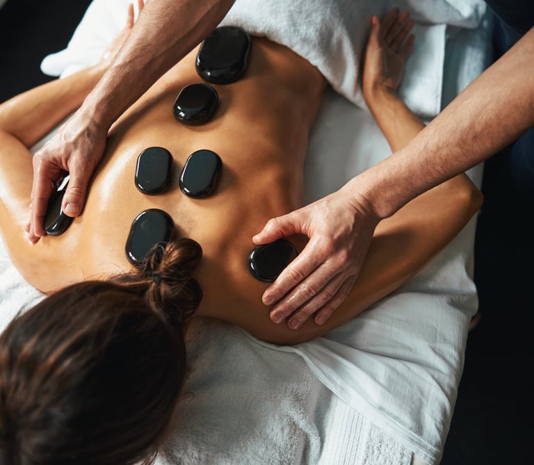 Effleurage: Long, smooth strokes are applied using the heated stones to slowly massage the muscles and disperse the heat deeper into the tissues.