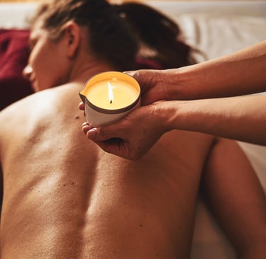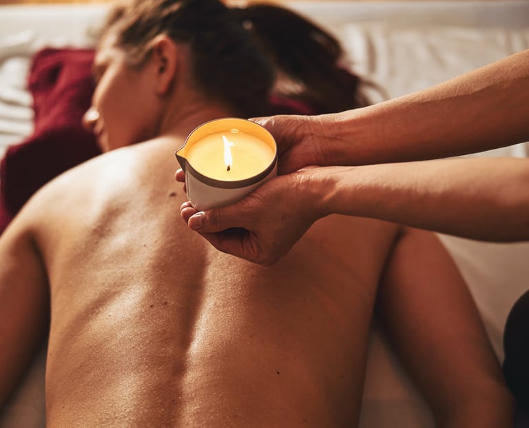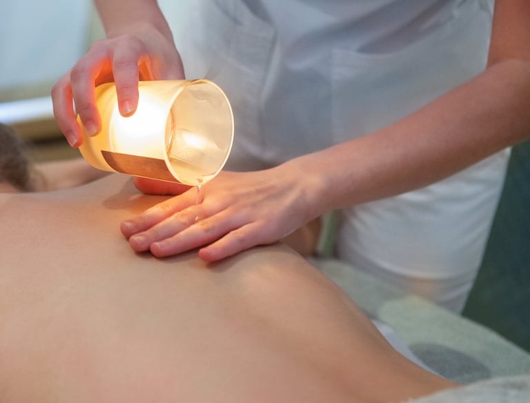 Using warm wax poured onto the skin, candle massage incorporates gently massaging the warm wax into the muscles.